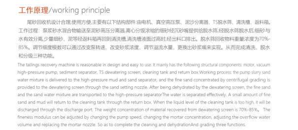 簡介—— TSJ系列尾砂回收機是我公司吸收國外先進技術并結合我國實際情況而設計的具有國際先進水平的細沙回收機。廣泛用于泥漿凈化、水
